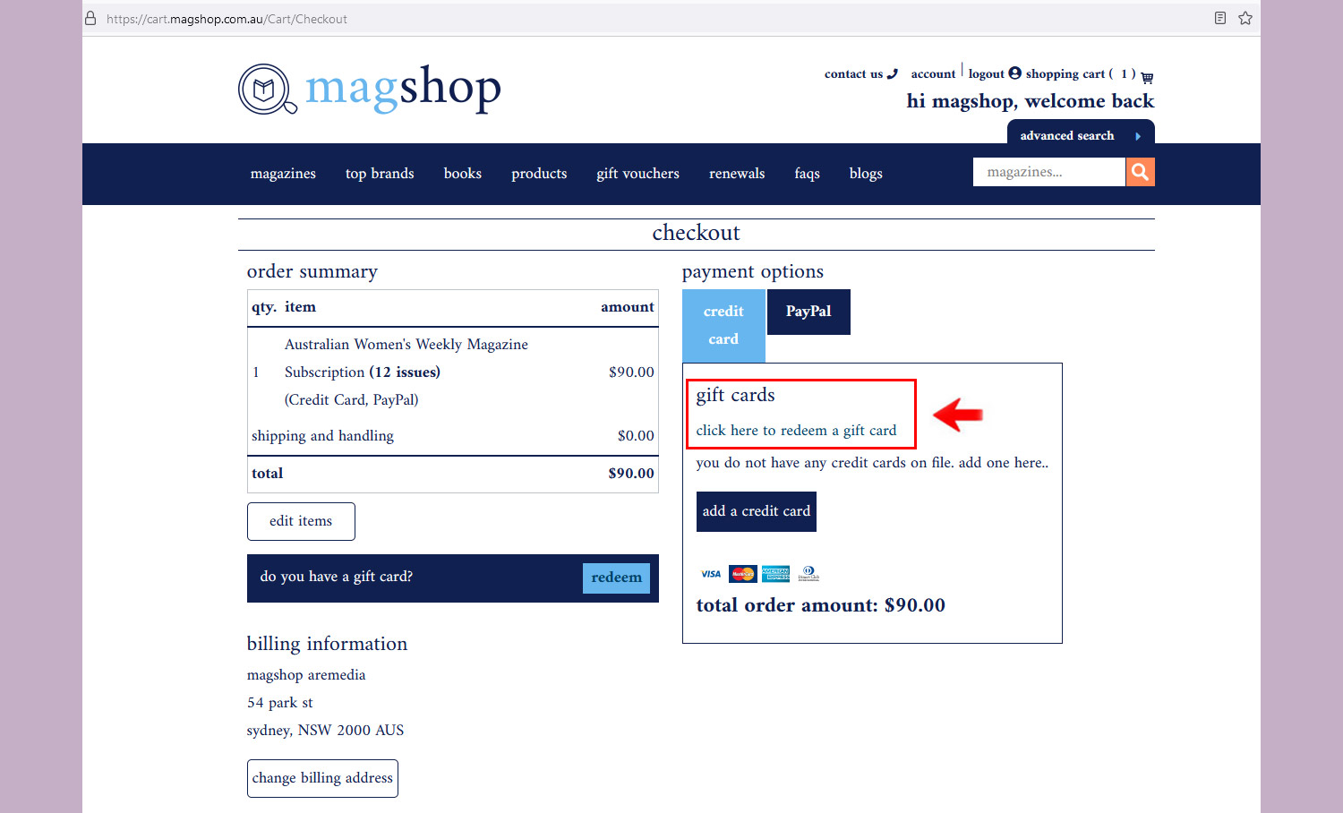 please note: customer must login into magshop account or create a new account if don't have one before gifting process.