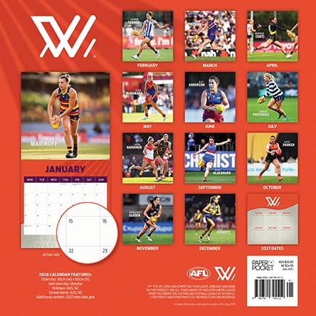 The offical AFL Womens 2026 calendar, featuring you favourite players in action on the field.