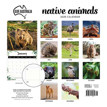 See 12 of Australia's native animals wihtin this 2026 Our Australia Native Animal wall calendar