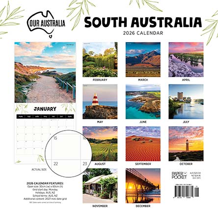Take and adventure throughout South Australia in this 2026 wall calendar