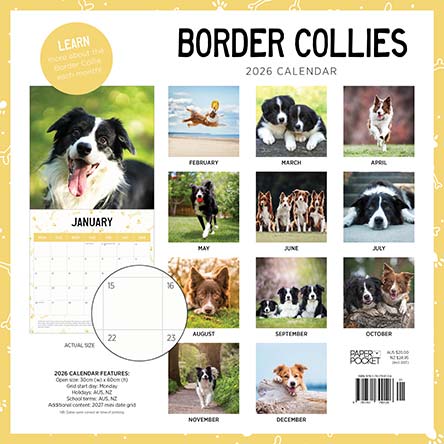 Spend each month of 2026 with the lovable Border Collie breed, with this 2026 wall calendar.