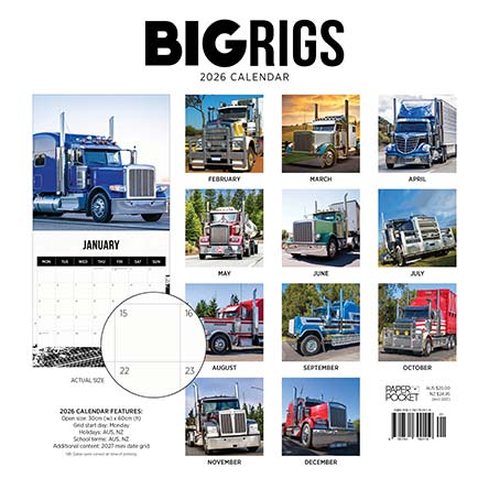 Big Rigs 2026 wall calendar, has captured these road warrioes in stunning photography and will help you cruise smoothly through 2026