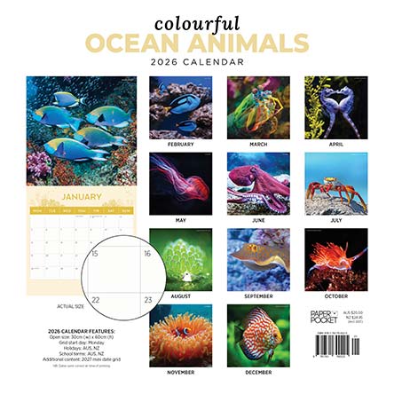This 2026 Colorful Ocean animals wall calendar features some of the most beautiful sea creatures to exist.