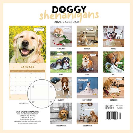 These little canines can get into all sorts of trouble, discover all these shenaniagans within this 2026 wall calendar.