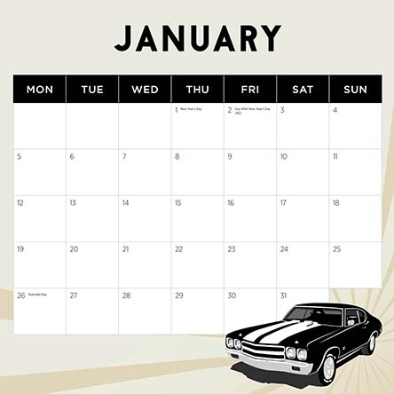 Look at the beauty and magificence of these Hot Mustangs in this 2026 wall calendar.