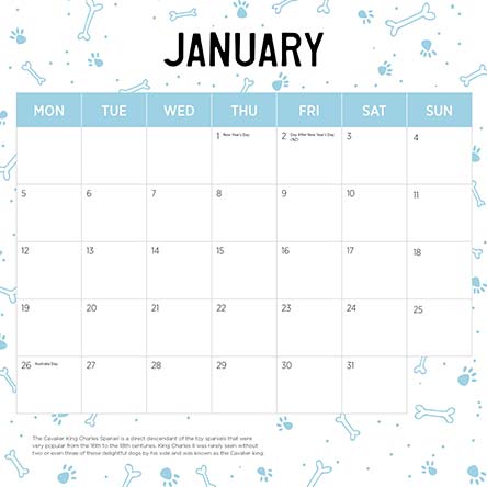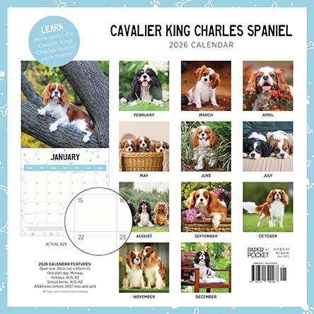 Cavalier King Charles Spaniel maybe small in size, but they have a big heart. See this cute breed every month, in this 2026 wall calendar.