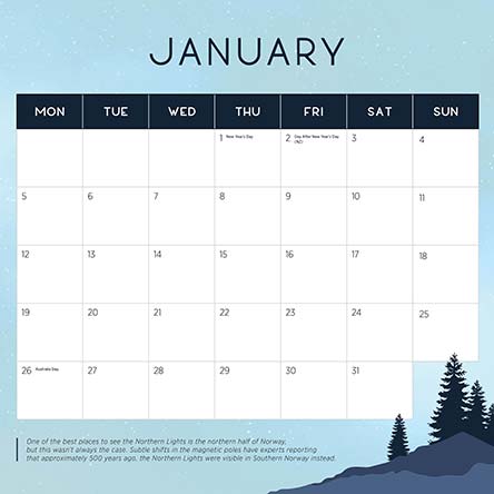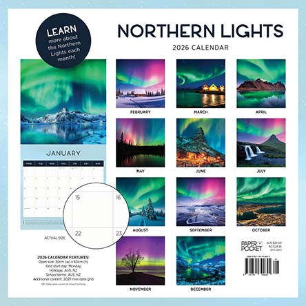 Explore the beautiful images of the auroras of the Northern Lights within this 2026 Calendar.