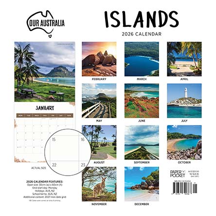Spend your 2026 island hopping, with this 2026 wall calendar. Discover Whitsundays Islands to the iconic Kangaroo Island.