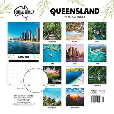 Explore the nation's sunny state of Queensland for 12 months in this 2026 Our Australia Queensland wall calendar