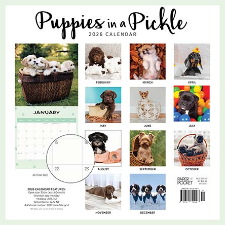 Discover what these puppies have done with this Puppies in a pickle 2026 wall calendar.
