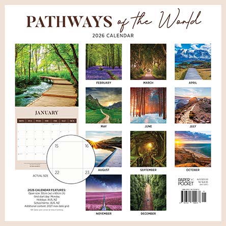 See the Pathways of the World for 12 months, right from the comfort of your home or office. Discover beautiful imagery all year long, in this 2026 wall calendar