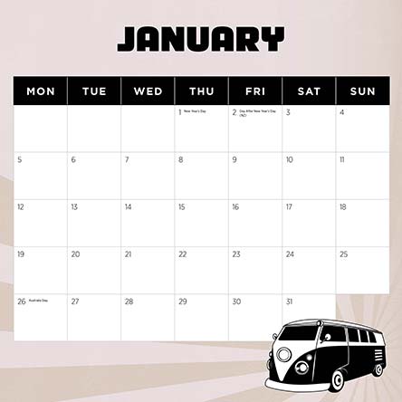 Embrace van life with this 2026 Retro van wall calendar.