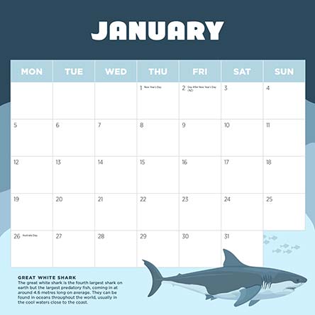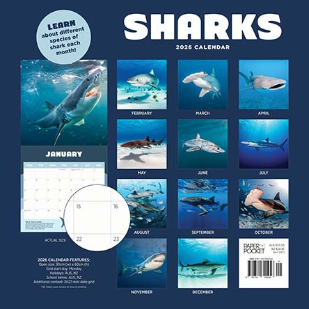 Sharks 2026 wall calendar shares a glimpse of these marine creatures up close, ranging from their diverse species