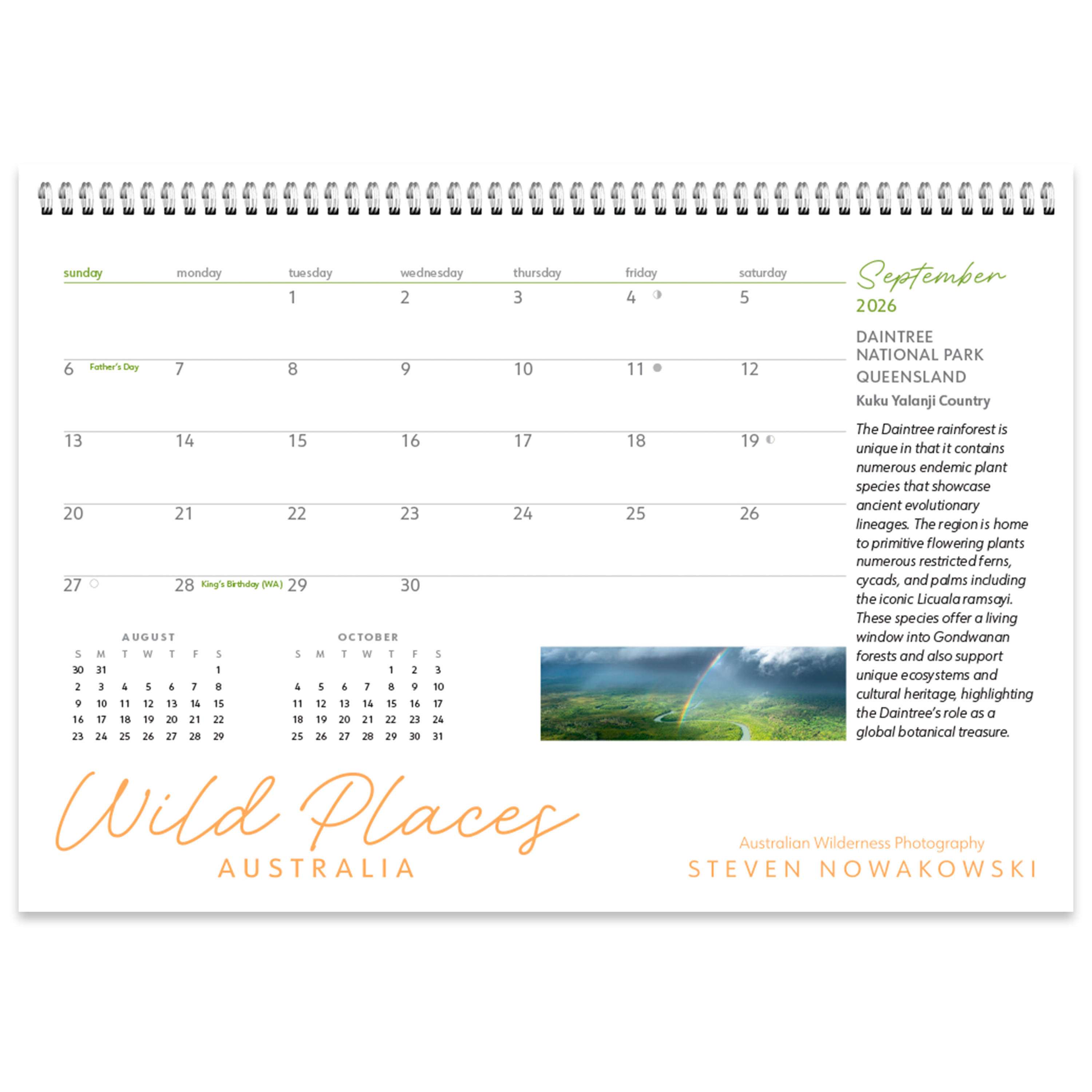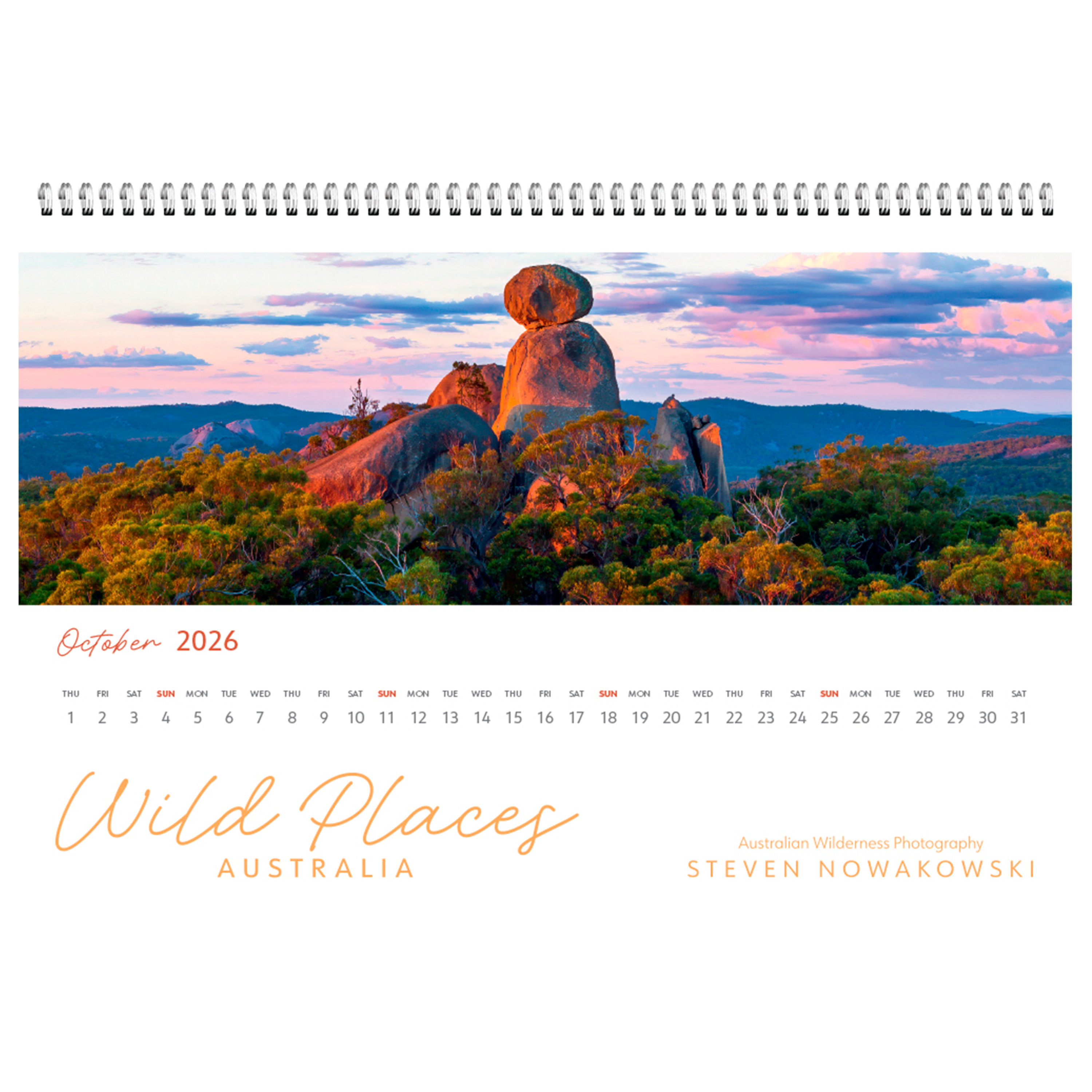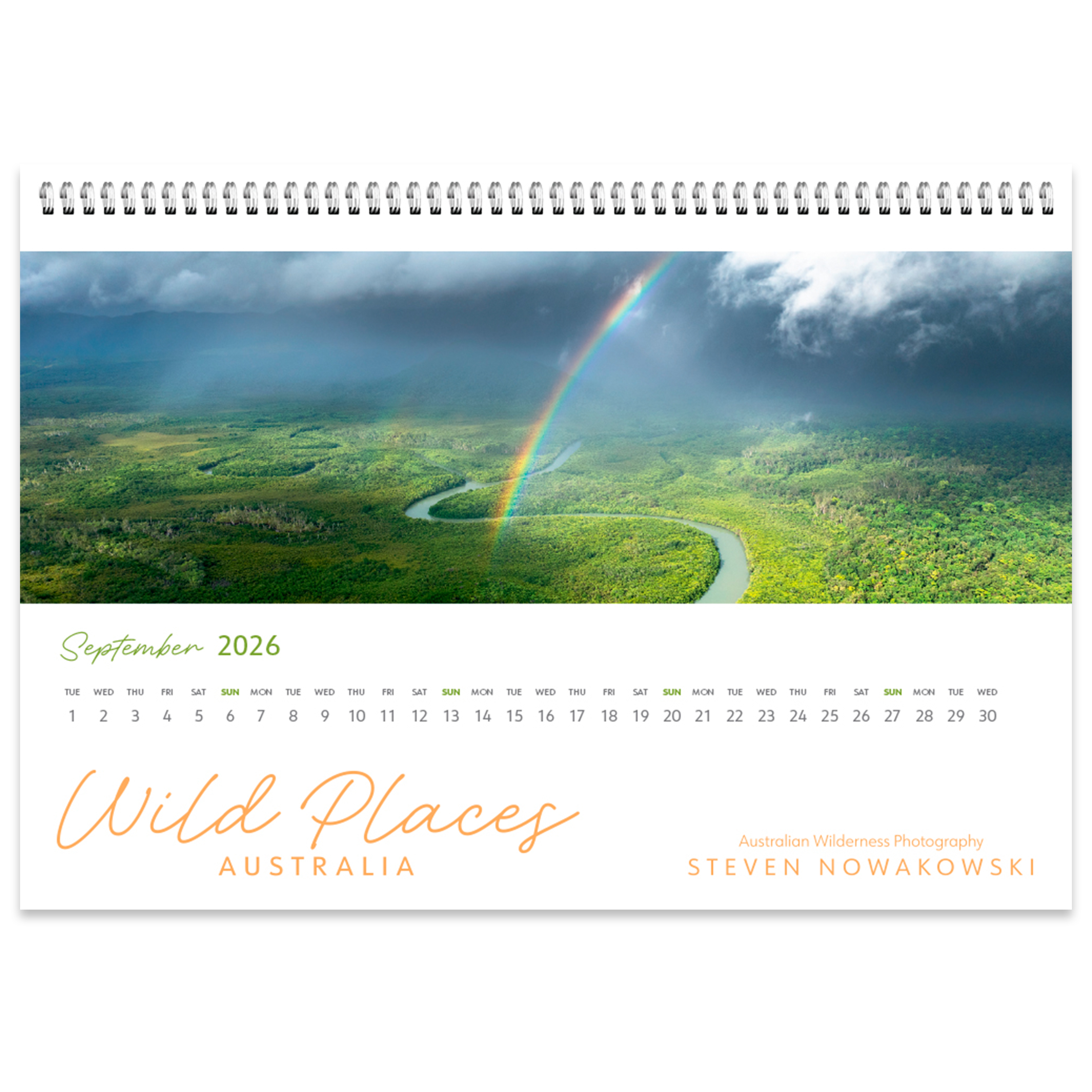 Compact 13 month desk-top calendar featuring stunning panoramic images of Australia's diverse wild landscapes by leading wilderness photographer, Steven Nowakowski.