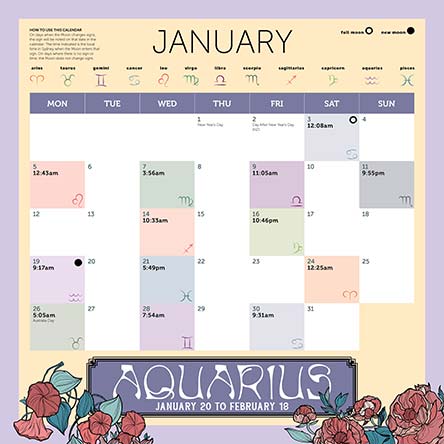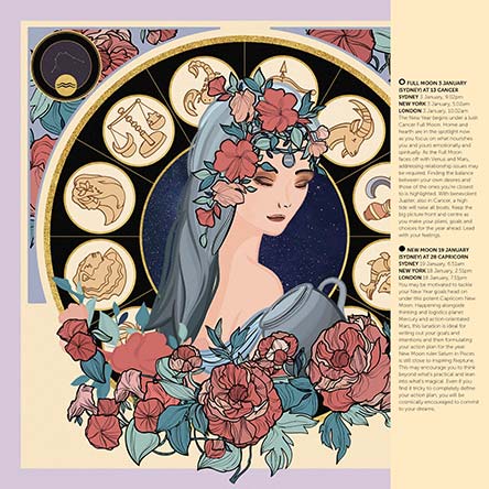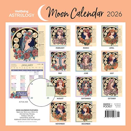 Navigate your 2026 with this Wellbeing Astrology calendar, including the insightful moon calendar, following the paths of the full and new moons.