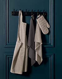 Subscribe to home beautiful and receive A BEAUTIFUL KITCHEN SET from RAINE & HUMBLE. This includes a pinafore-style apron, oven mitt and a set of tea towels.